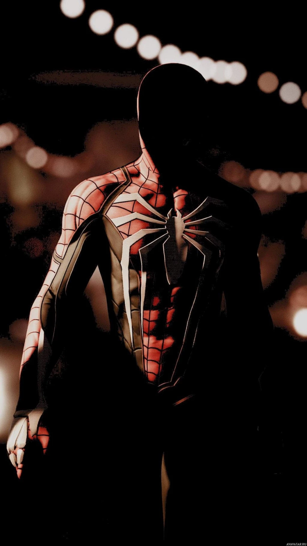 The image depicts a character wearing the Spider-