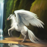 a fantastical creature known as a pegasus. It is depicted with the upper body and
