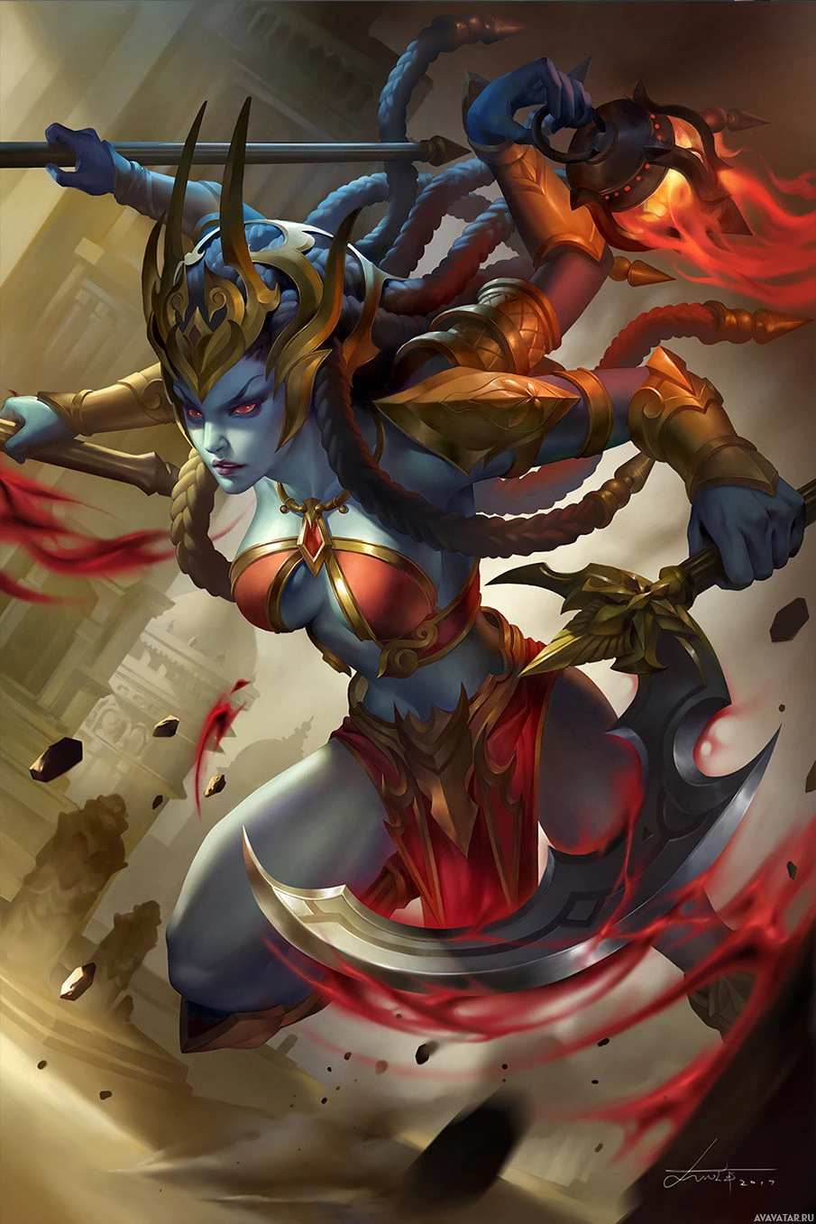 ultimate form where she gains additional abilities such as increased speed, teleportation, and a powerful sword attack that creates a shockwave upon impact. The art style suggests it's an illustration rather than