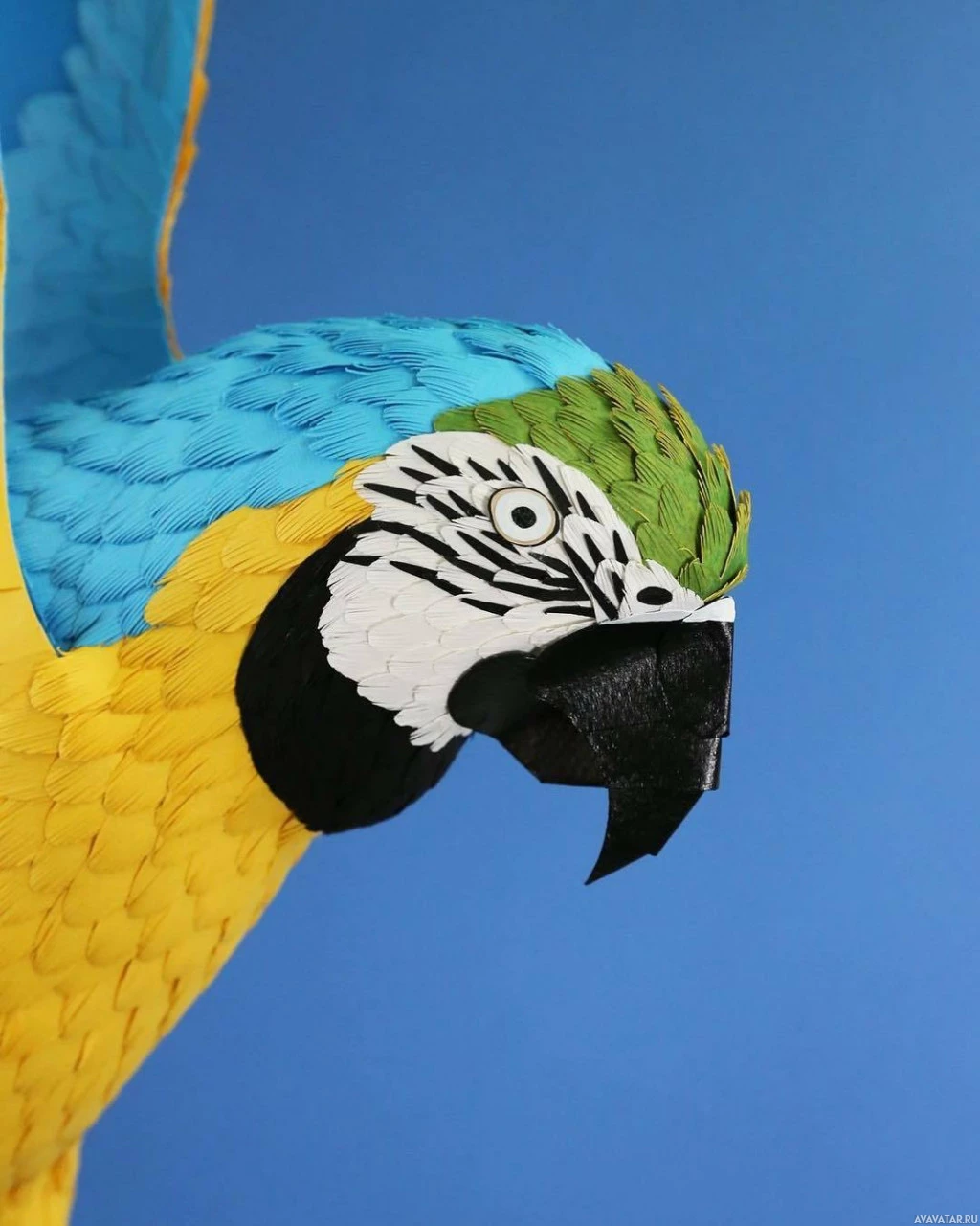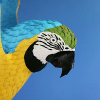vibrant plumage. It has the typical characteristics of a parrot, such as its