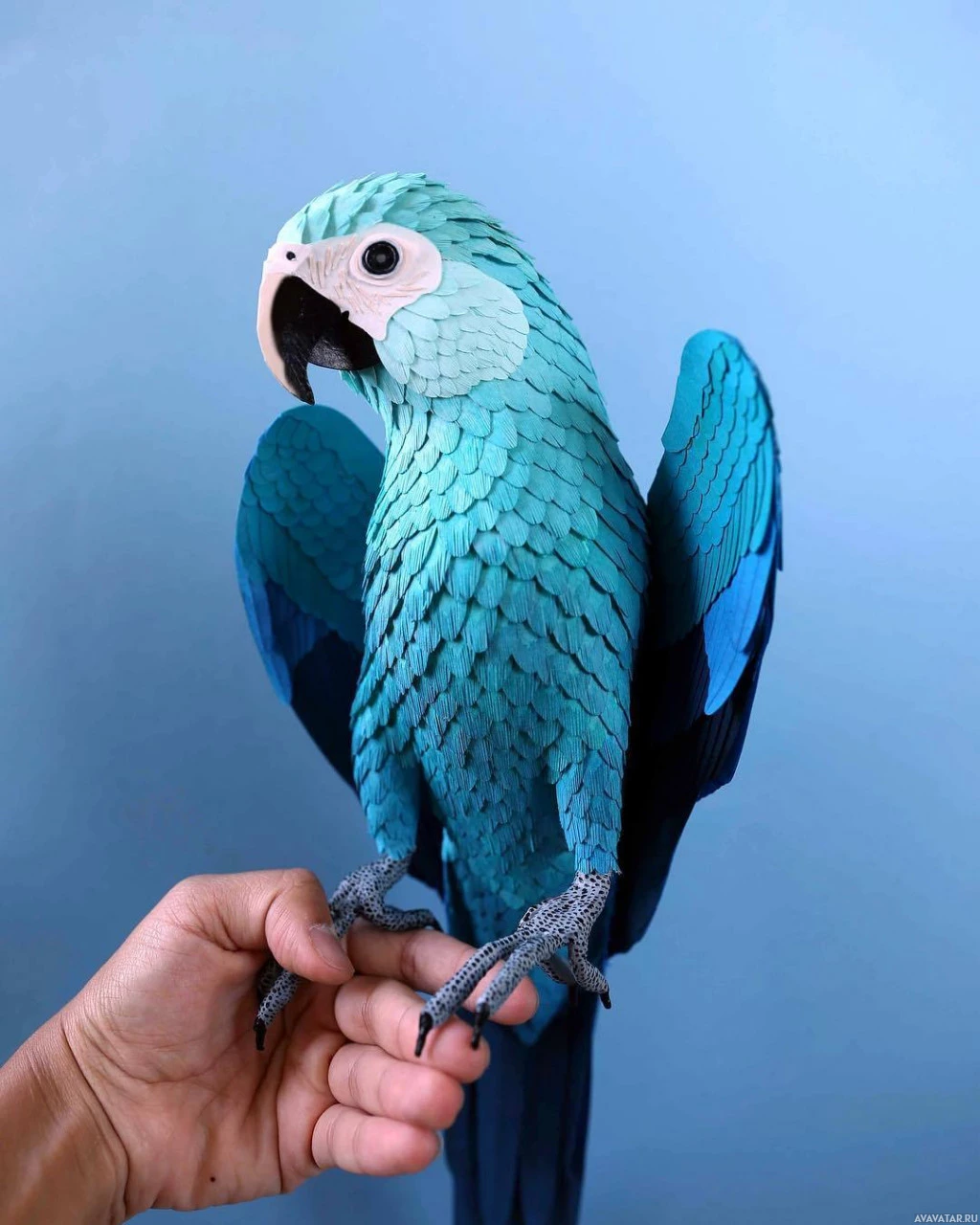 vibrant plumage and crest on top of its head. The colors are bright and include shades of blue, green, yellow, and possibly other hues that contribute to the overall striking appearance of the bird.
