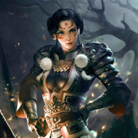 a female character who appears to be a warrior or fantasy heroine. She has