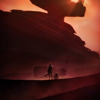 the Star Wars franchise. It features a silhouette of a character in a desert-like setting with
