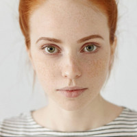a young woman with red hair. She has