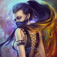 a female character from the Mortal Kombat series, known as Kitana. She is portrayed in an artistic and stylized manner that deviates from her traditional appearance in