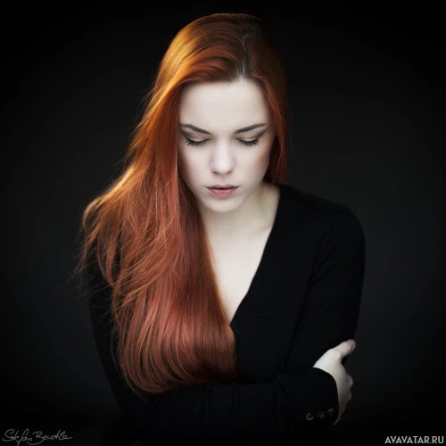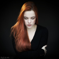 red hair. They appear to be gazing off to the side, possibly in