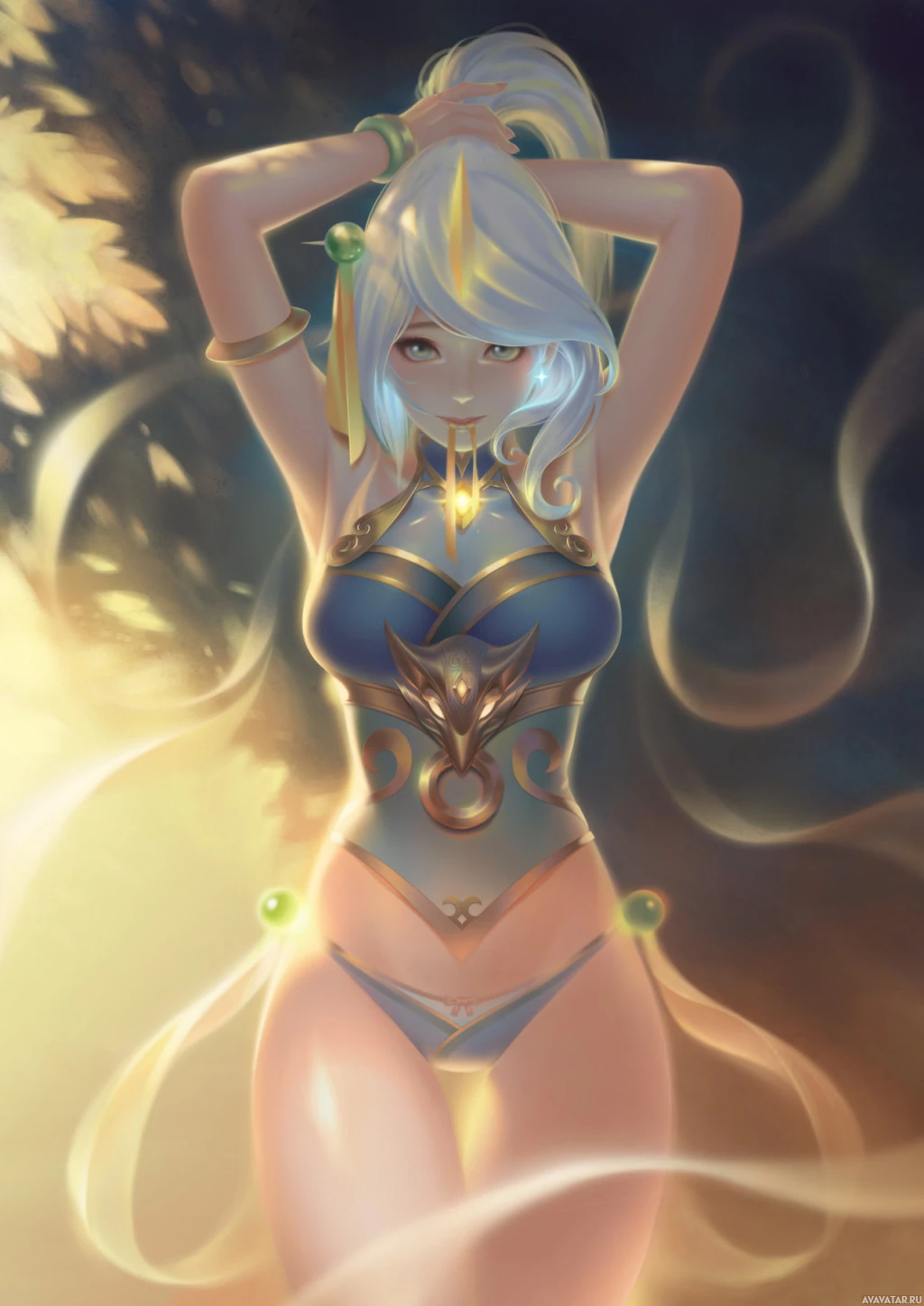 a video game or fantasy setting. She has