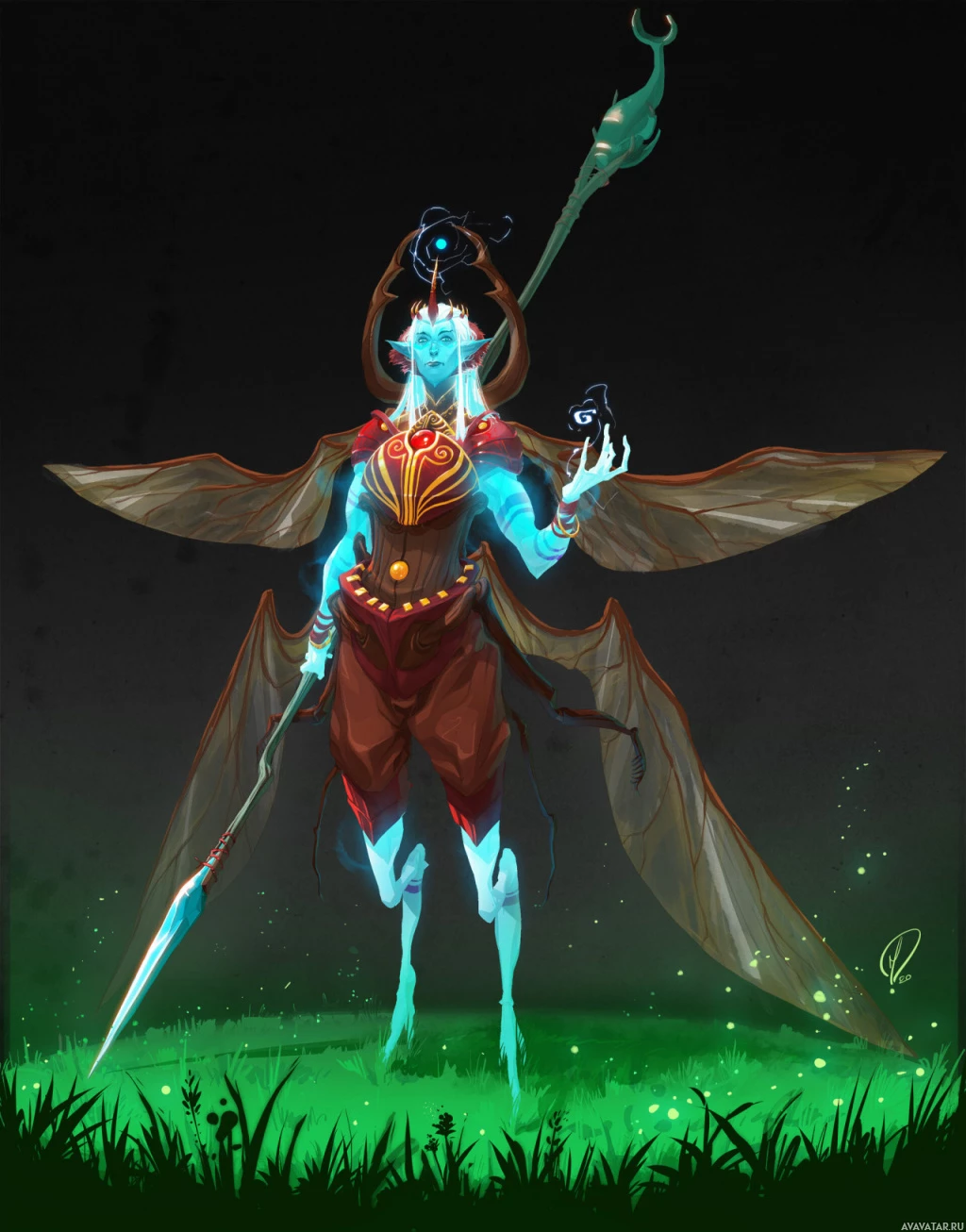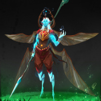 a fantasy character that appears to be an insect-like being with wings and antennae. It has