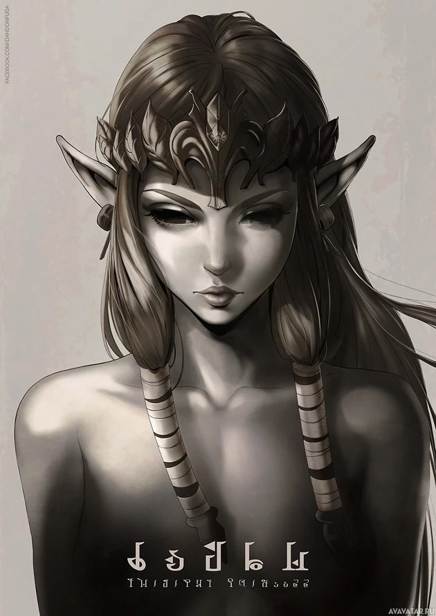 an illustrated character that appears to be a female elf. She has pointed ears, which are characteristic of elves in