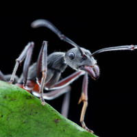 particular ant is captured in a pose that suggests it might be crawling or exploring its environment.