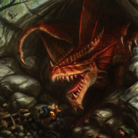a fantasy scene featuring a dragon. It appears to be a piece of artwork or concept illustration for a story or game that involves fantasy elements, such as the presence of
