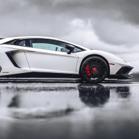 luxury automobile brand. The Lamborghini logo is visible on the side of the car, and it has