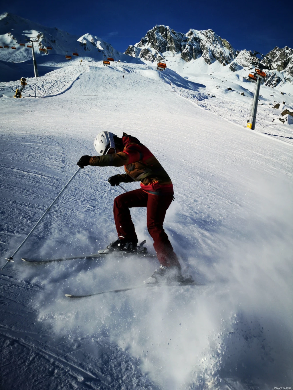 The picture shows a person engaged in skiing on