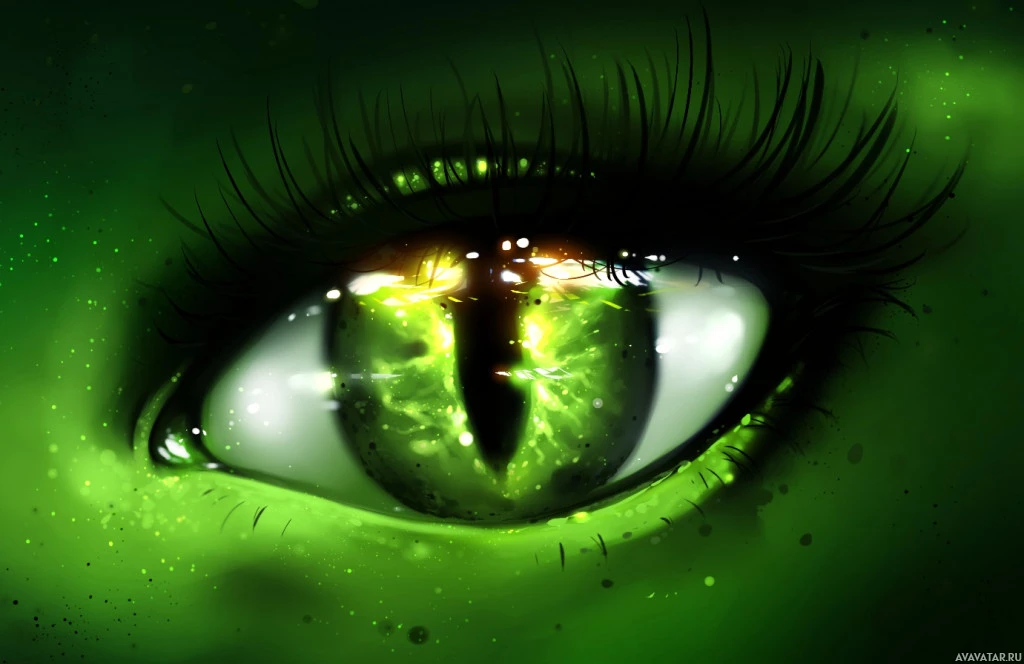 The image features a close-up of an eye with a greenish hue, possibly representing the Hulk's eye from
