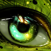 The image shows a detailed and vivid representation of an eye. It appears to be stylized with a high