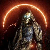 hooded cloak and has a skull for a head, which is a common symbol of death. The character is set against an ominous backdrop with