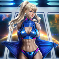 Samus Aran from the "Metroid" series, though this particular version seems to have been modified with a more revealing design that deviates from the traditional armor style seen in the games.