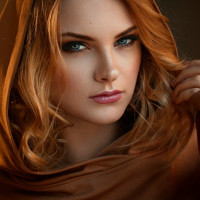 a hooded sweatshirt and has her hand raised to her face, possibly in a thoughtful or contemplative pose. Her gaze is directed towards the camera, creating