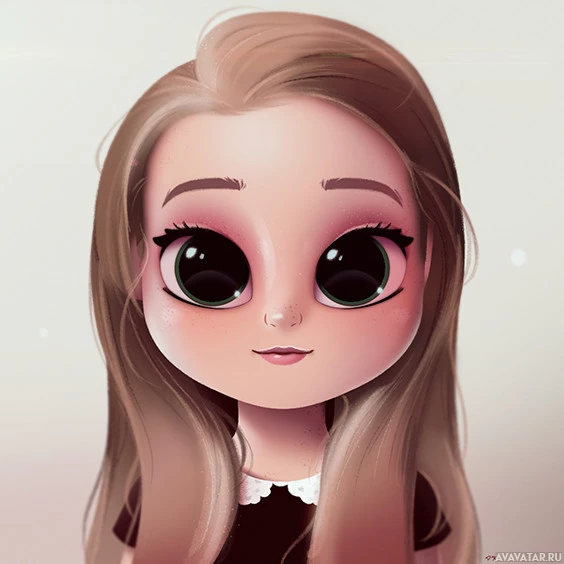 an animated girl with large, expressive eyes and stylized features. She has