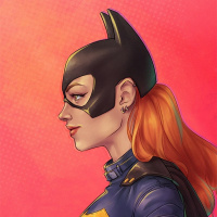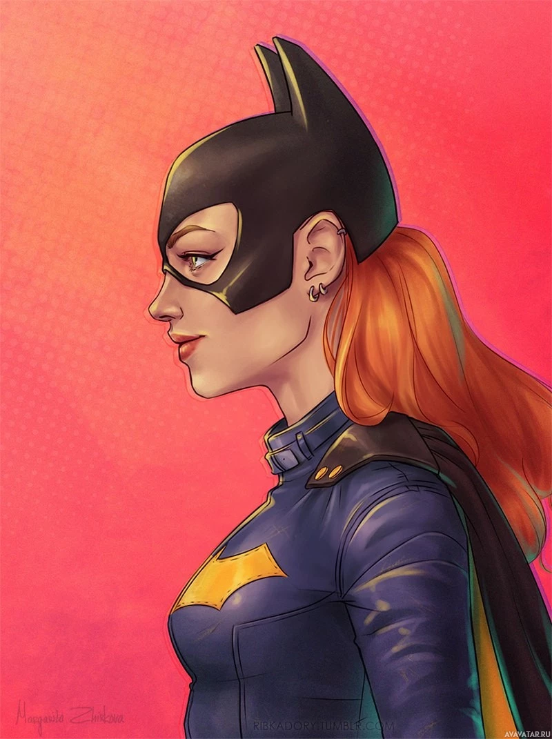 The image depicts an illustration of a character known as Batgirl, who is a fictional superhero appearing in American