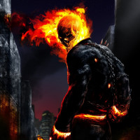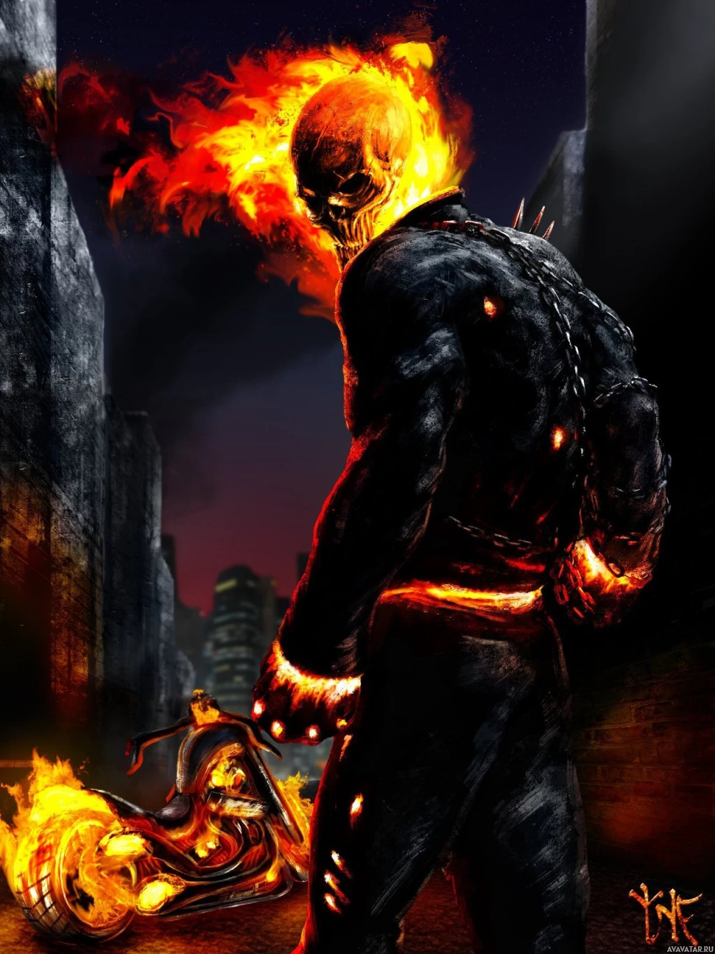 The image depicts a character that appears to be the Ghost Rider, an iconic figure in