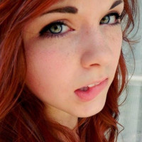 blue eyes and is wearing makeup, including what seems to be eyeliner and lipstick. Her expression suggests she might be playful or mischievous. The background includes a window with