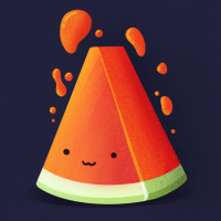 The image features a cute, stylized illustration of a watermelon. The watermelon has a smiley face on the top part, with red seeds that are sprouting like flowers or bursts of fireworks coming out from its bottom. It's depicted in a whimsical and cartoon-like manner against a dark background.