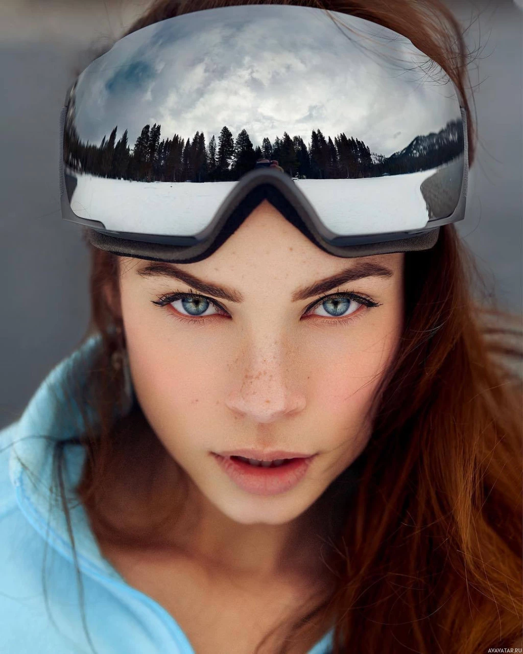 red hair, who appears to be engaged in winter sports or activities. She is wearing