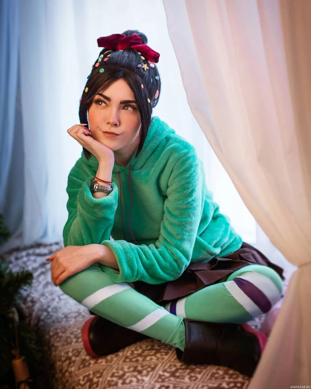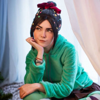 green hoodie and striped socks. Her expression is neutral or contemplative as she places her hand on her chin, which could indicate that she's thinking or daydreaming. The background suggests