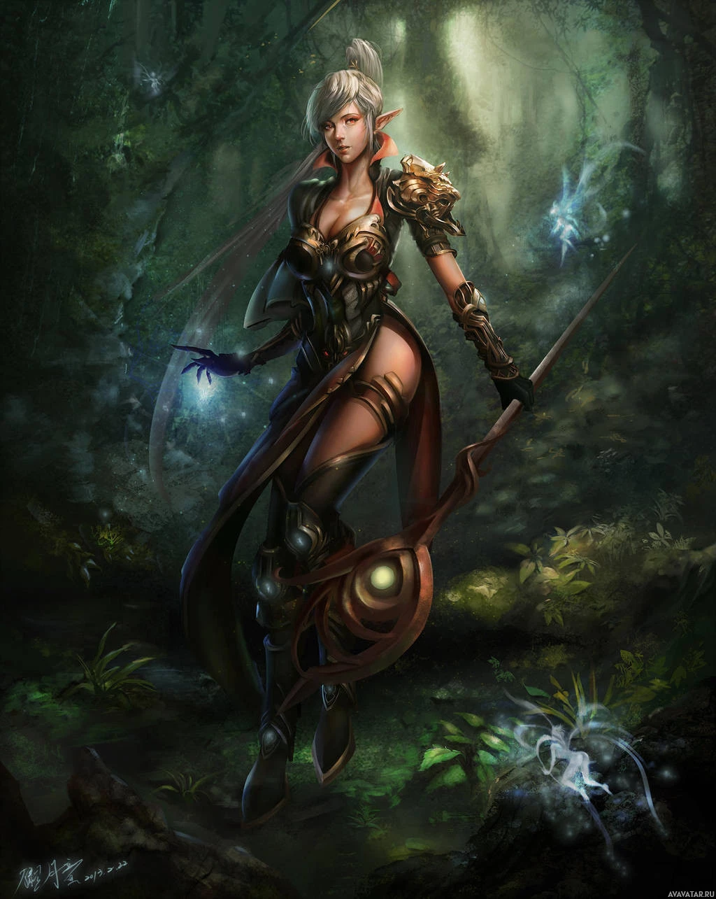 misty forest, reinforcing the fantasy atmosphere of the artwork.