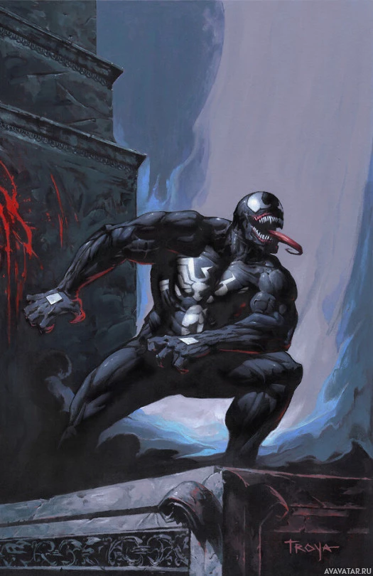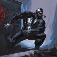 enhanced strength, agility, and durability. In this artwork, Venom appears to be in