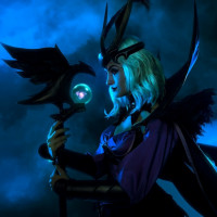 the video game "League of Legends." They are wearing elaborate costume elements such as armor, a cape, and accessories that resemble those found in the game. The character they are portraying has