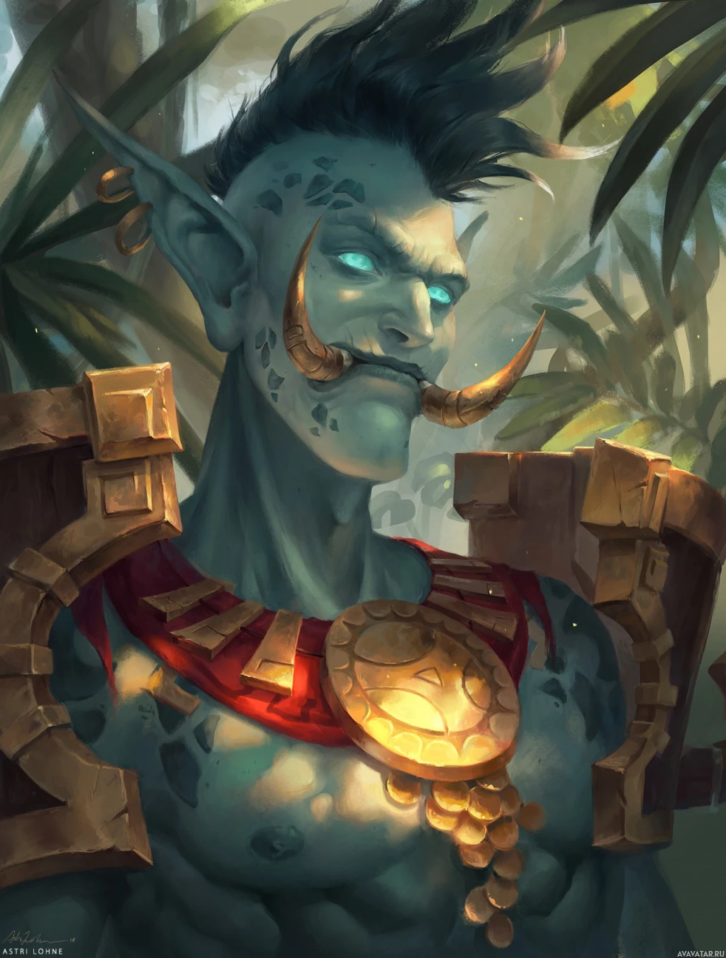 facial expressions or distinctive tusks, which are commonly associated with the mythical trolls in folklore. This particular character stands out due to the intricate armor and adornments on its body, suggesting it might be a warrior or guardian of some sort within its