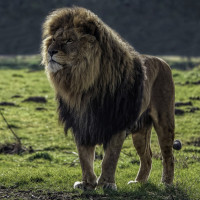 На снимке изображен лев в естественной среде обитания. Похоже, что он стоит на травянистой местности с кустарниками или кустами вокруг. Лев смотрит в сторону камеры, и его грива и черты лица заметно отображаются. Картина запечатлевает величественный вид этого животного и дает представление о жизни в дикой природе львов.