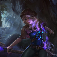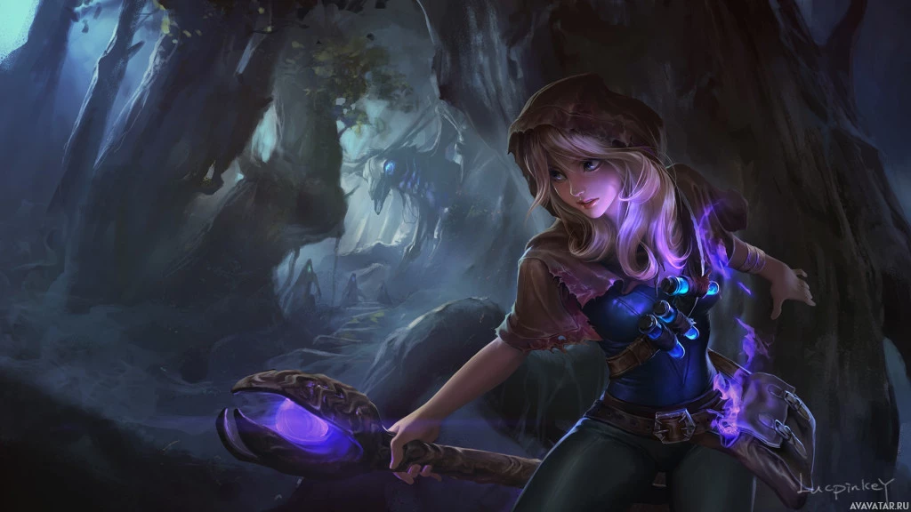 В образе присутствует женский персонаж, изображённый в стиле фэнтезийного искусства. У нее светлые волосы и она носит плащ с капюшоном, который накидывается на ее плечи. Персонаж, кажется, держит то, что выглядит как посох или палочка с фиолетовым наконечником, что может указывать на то, что у нее могут быть магические способности в контексте фэнтезийной темы этого изображения.