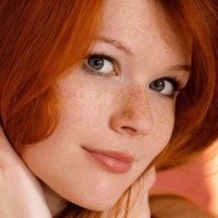 На картинке изображена молодая женщина с рыжими волосами. Она носит макияж и ухмыляется на лице, глядя прямо в камеру. Ее поза предполагает, что она может позировать для интимной или провокационной фотографии. Обратите внимание, что это описание основано исключительно на визуальном содержании предоставленного изображения.