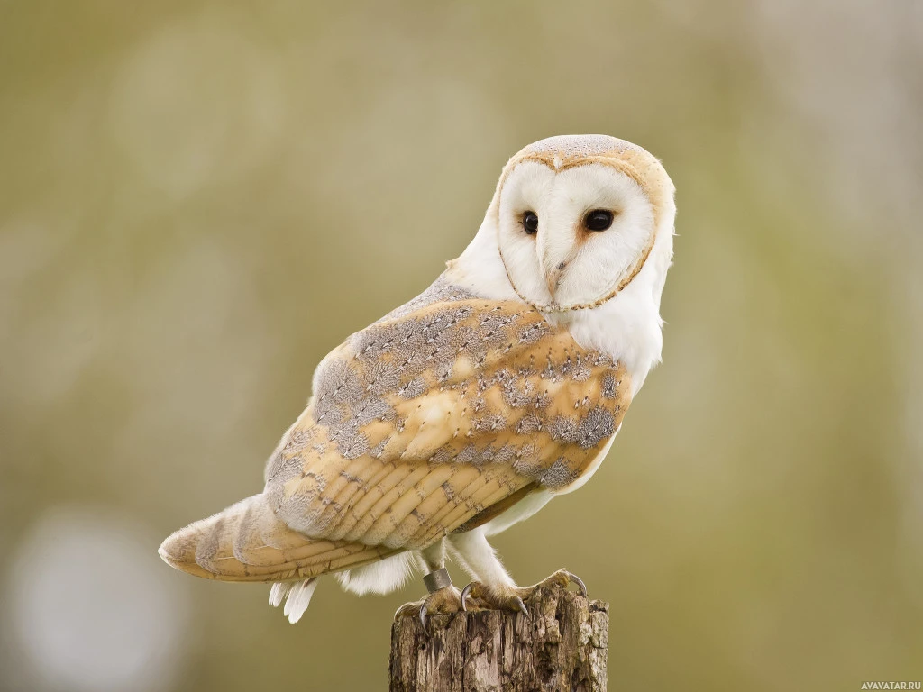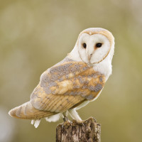face pattern and the striped plumage across its body. The background is blurred but suggests