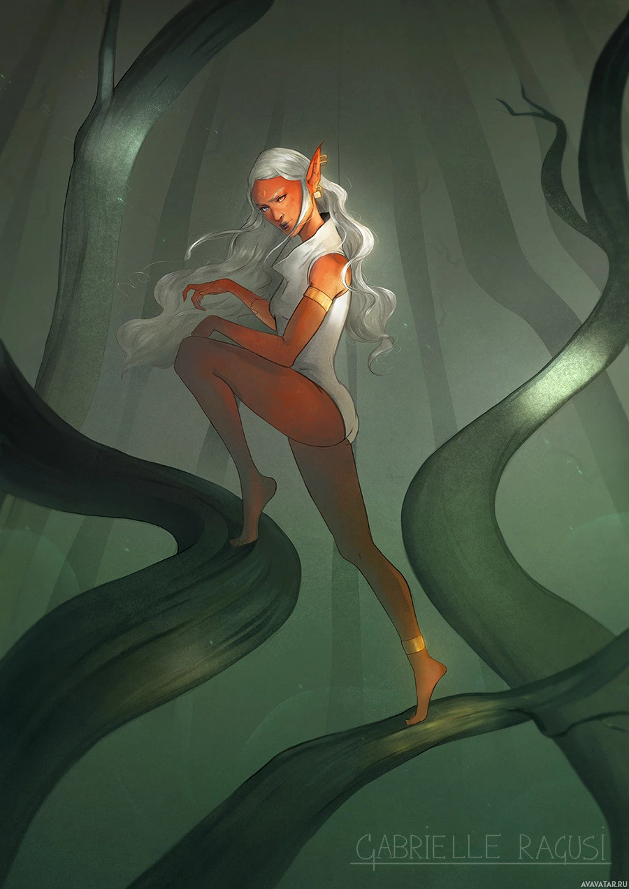 The image depicts an elven character in