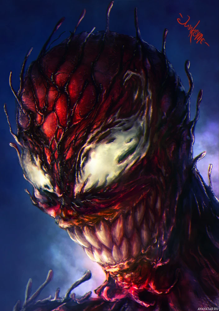 The image shows a character that appears to be the Carnage from