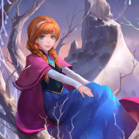 На картинке показан анимированный персонаж, напоминающий Анну из фильма «Замороженная». Она изображена сидящей на ветке дерева, с руками вместе и смотрящей в сторону зрителя. На заднем плане изображен снежный пейзаж под сумеречным небом.