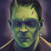 The image depicts a drawing or illustration of Frankenstein's monster. This character is a fictional figure from the novel "Frankenstein" by Mary Shelley, and it has become a well-known representation of science fiction in popular culture.