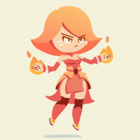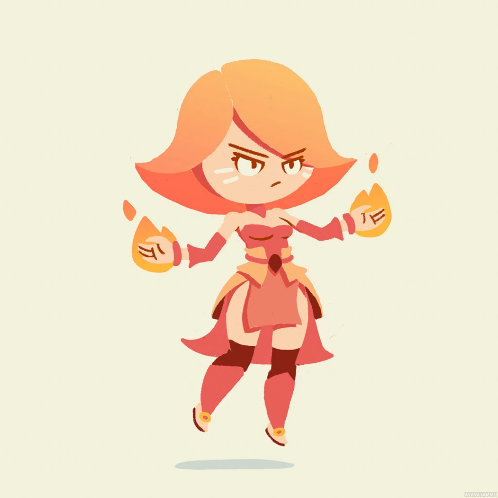 an animated character, likely representing Lina from the game Dota 2. She is shown in