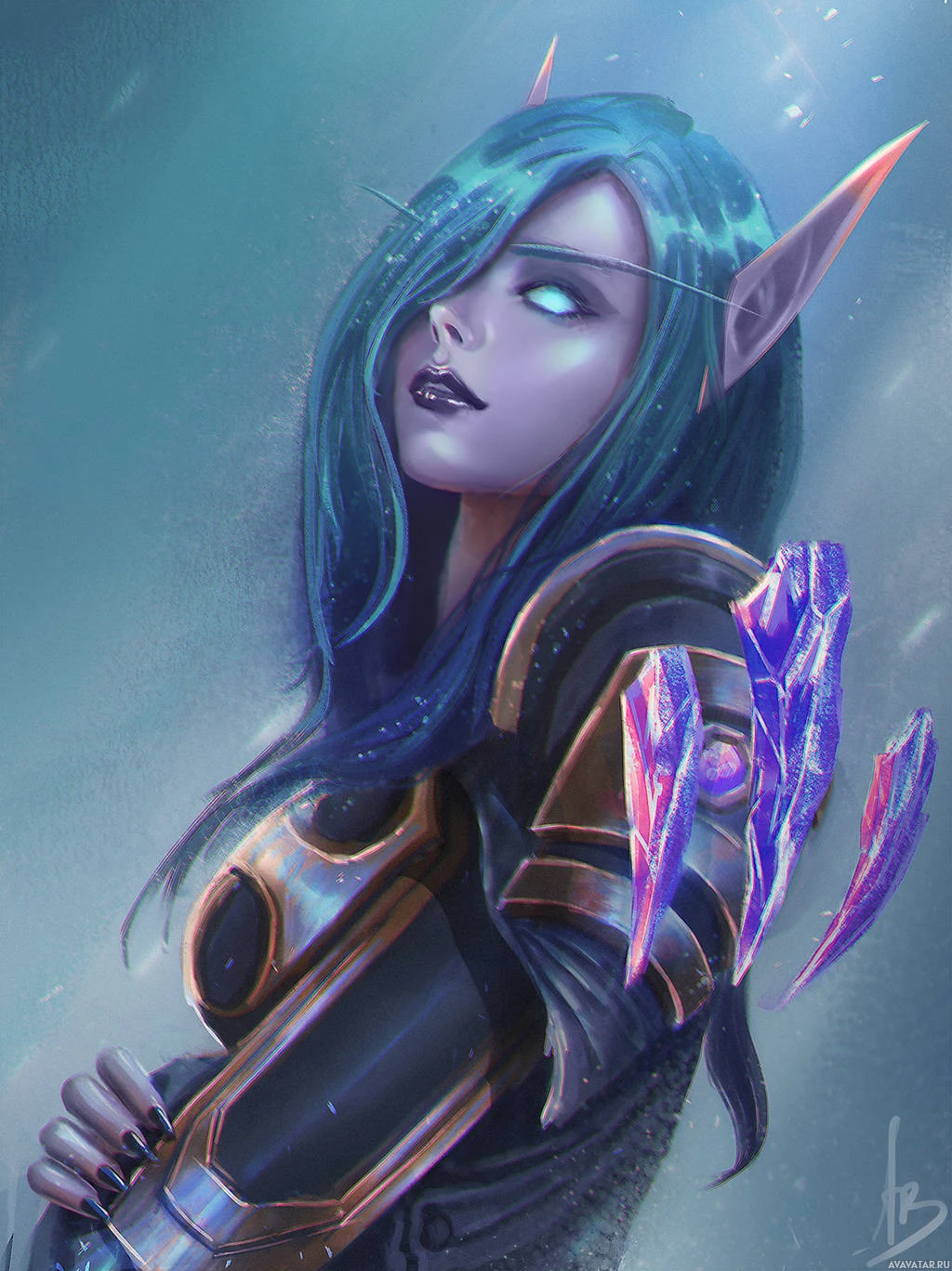 a fantasy setting, possibly from a game or story. The character is wearing armor, suggesting they may have a role as a warrior or adventurer. The background gives off a magical or underwater vibe with light