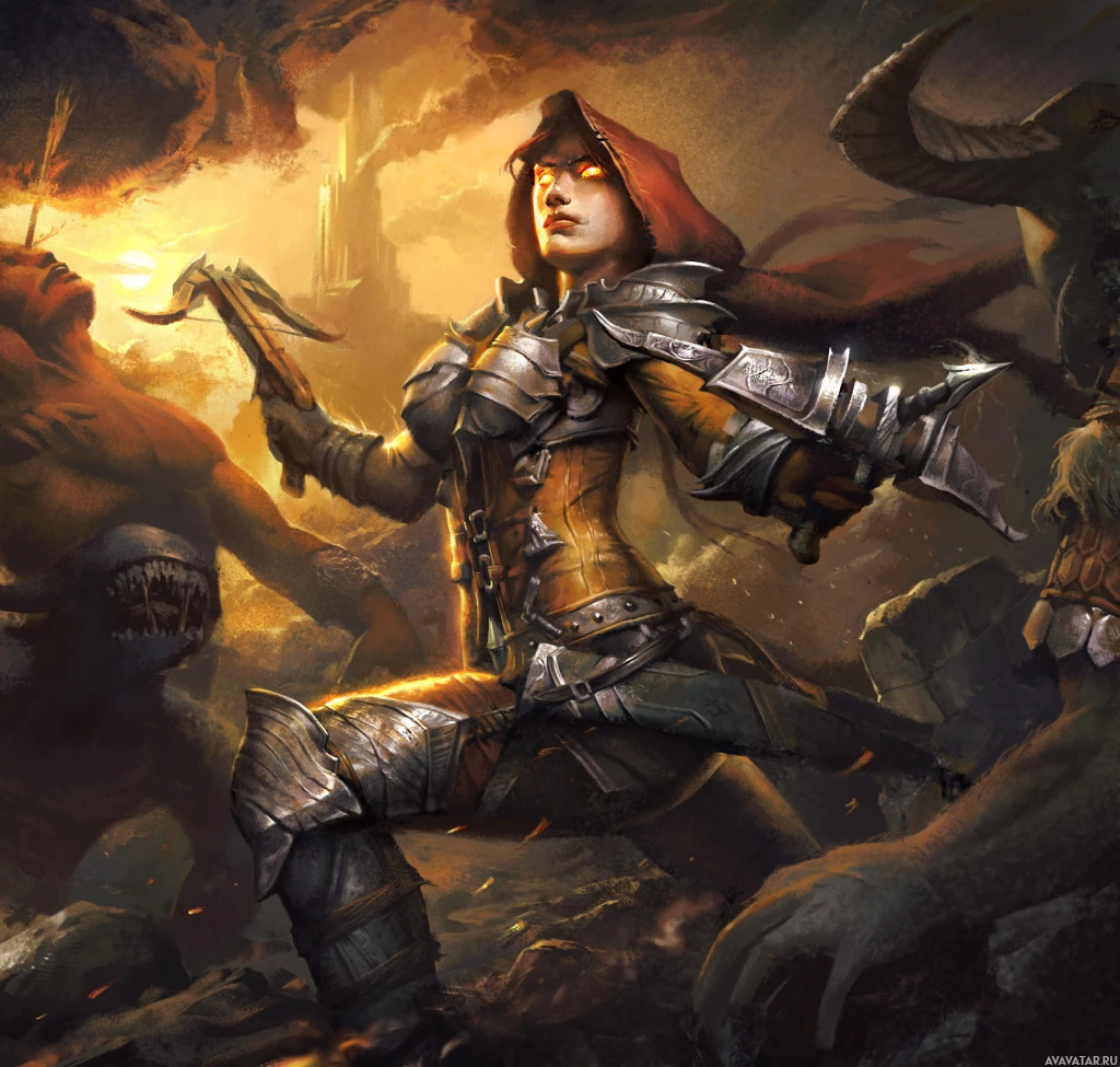 battle scene, fitting for the adventurous and combat-oriented nature of the Demon Hunter class in "Diablo III."
