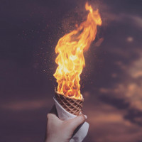 an ice cream cone that is on fire. The flame appears to be emerging from the end of the cone, which suggests it may have been ignited for