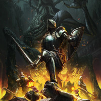 the video game "Dark Souls." This character is shown wielding a sword and wearing armor, which are typical elements of a knight or warrior in