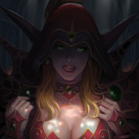 The image depicts a character that appears to be from the "Warcraft" universe, which is known for its fantasy and game elements. This particular character is wearing armor with a helmet that conceals her face, giving off