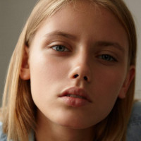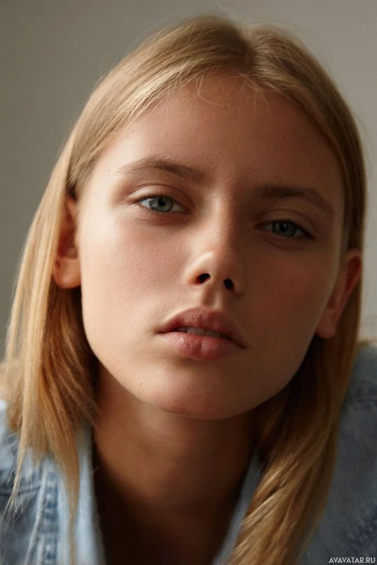 The picture features a young woman with light hair and a neutral expression on her face. She has a slender build, and her gaze is directed towards the camera. Her complexion appears to be fair, and she seems to have a calm demeanor. There is also a subtle hint of a blurred effect around the edges of the image, giving it an artistic touch.