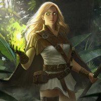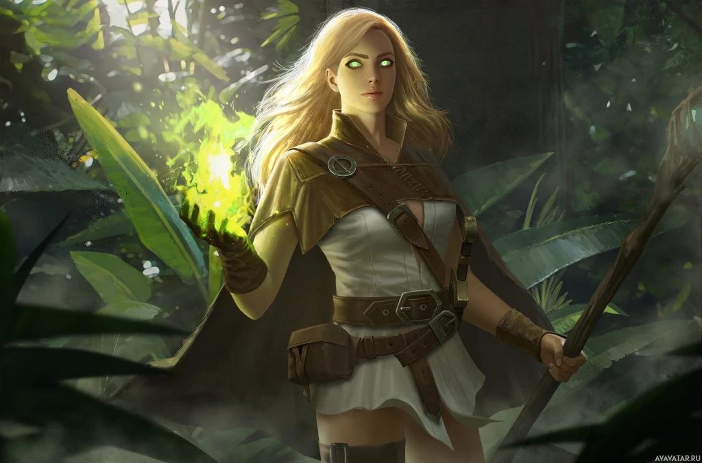 jungle setting, enhancing the mystical or adventurous theme of the character.