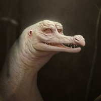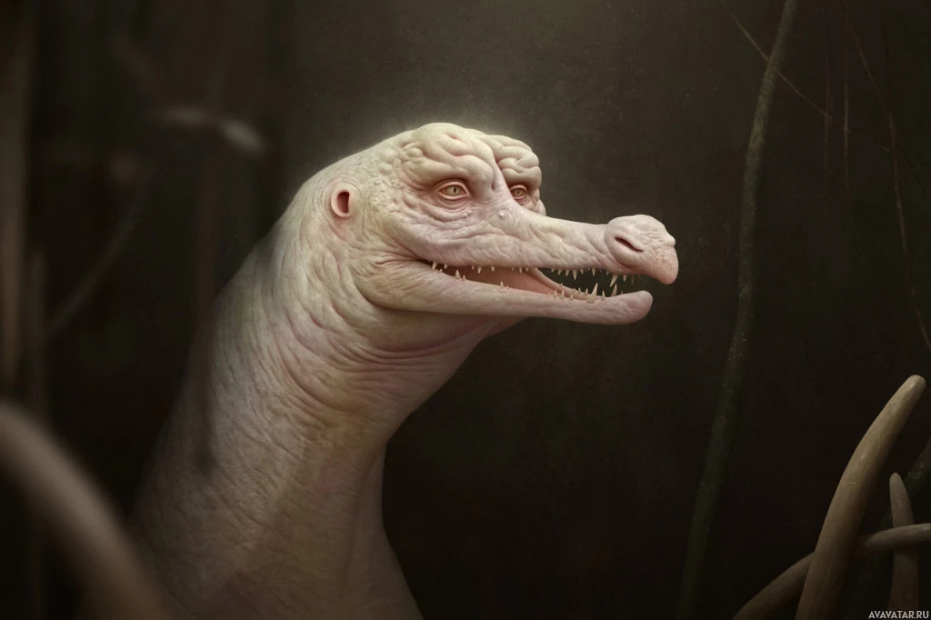 a fantastical creature that resembles an alligator but with several unusual features. It has